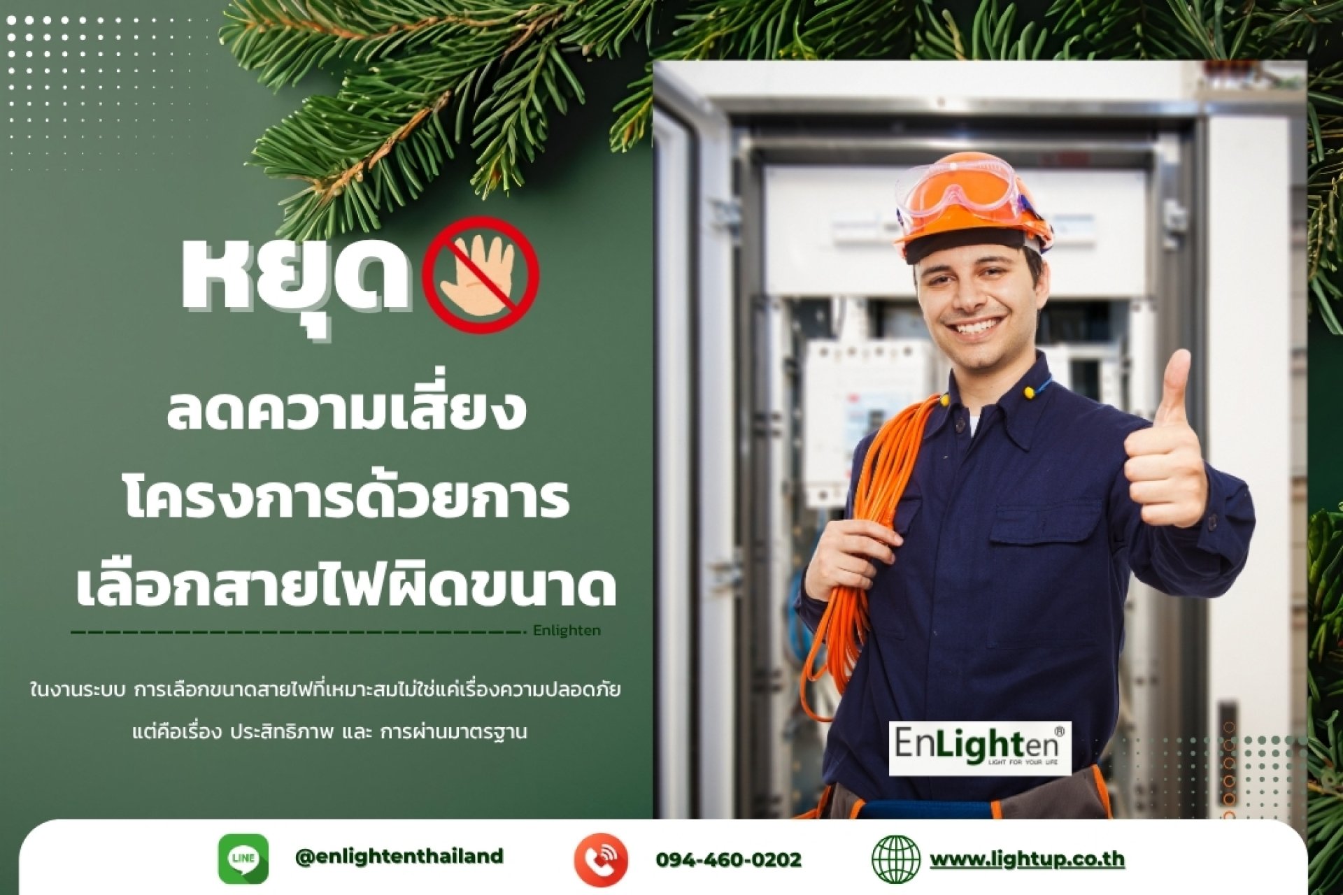 หยุดความกังวลเรื่องความเสี่ยง และเริ่มต้นโครงการด้วยความมั่นใจ ให้ EnLighten เป็นผู้เลือก "ขนาดสายไฟฟ้าที่เหมาะสม" และติดตั้งระบบไฟฟ้าที่มีคุณภาพ ปลอดภัย และได้มาตรฐานสูงสุดสำหรับคุณ
